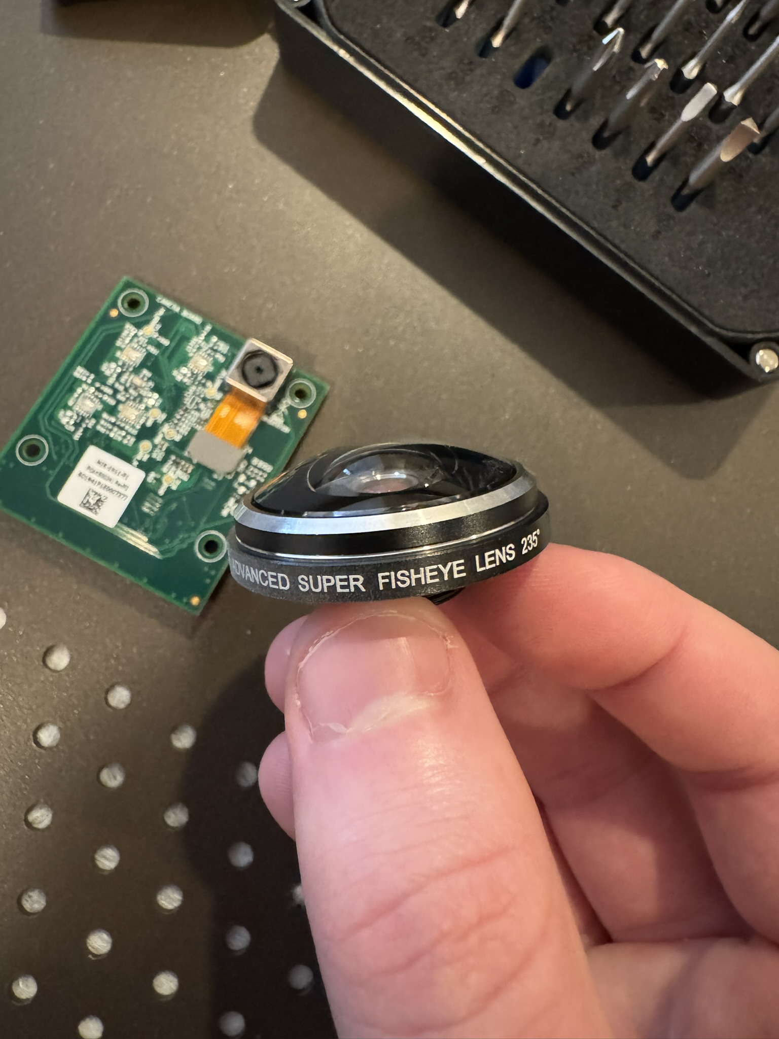 I was suprised to see how low-tech the fisheye lens placement was, but it really didnt move around at all once the camera module was screwed down.