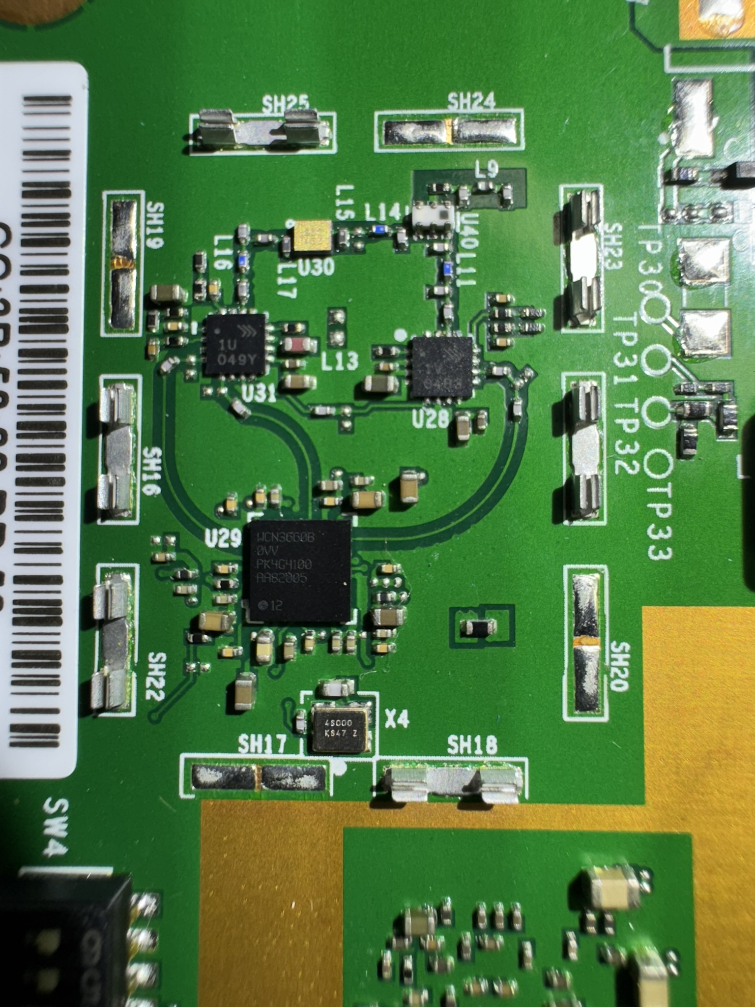 On the bottom of the board, there is a Qualcomm WCN3660B providing Wifi and bluetooth.